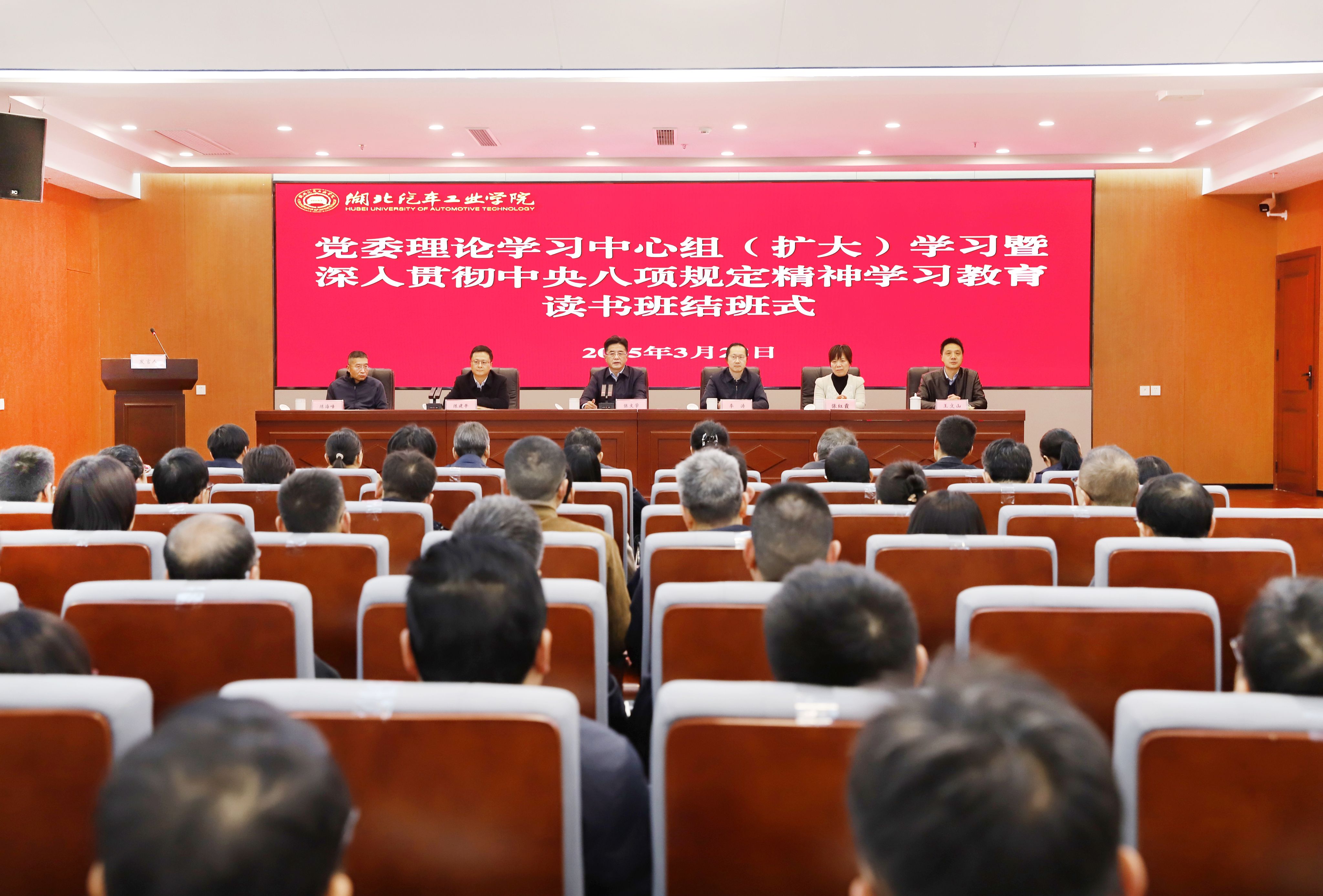 本网讯(文/图 广娟)3月28日,学校在产教大楼三楼报告厅举办党委理论学习中心组(扩大)学习暨深入贯彻中央八项规定精神学习教育读书班结班式。校党委书记张文学主持并讲话。全体在家校领导、全体中层干部参加结班式。