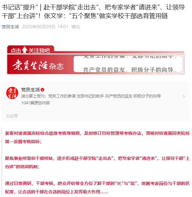 【党员生活】张文学:“五个聚焦”做实学校干部选育管用链